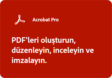 PDF'lerinizde daha akıllı çalışmanızı sağlayan 70'ten fazla özelliğe sahip olun. Acrobat Pro ile oluşturun, iş birliği yapın, e-imzalayın ve daha fazlasını yapın.
